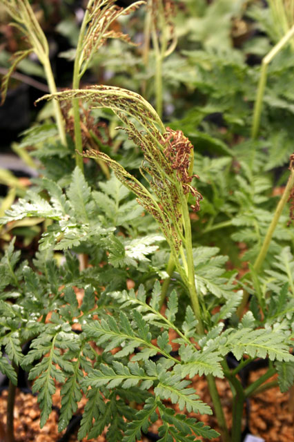 オオハナワラビ 【601-081】 その他 2019.10.26 夏に特徴的な胞子葉を付ける。 開花期 冬季 落葉 日当たり 日陰 耐寒性 中 水やり 普通 施肥 生育期に有機液肥を2週間に1回程度 用土 基本培養土/ミズゴケ