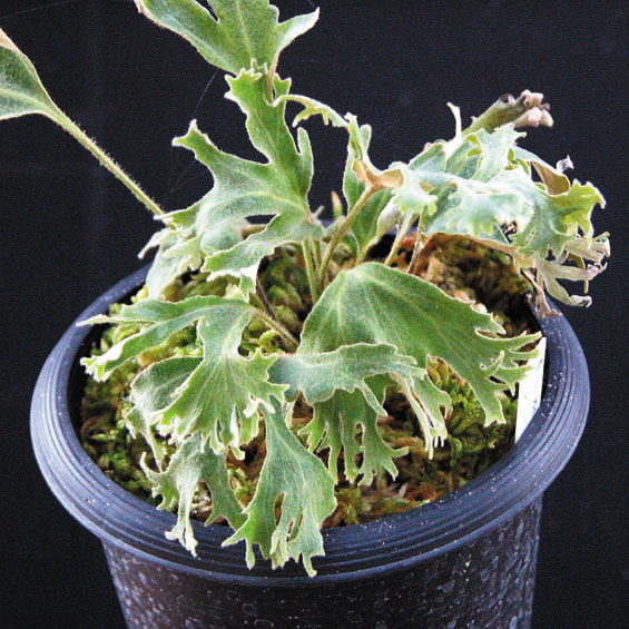 獅子葉モミジヒトツバ 【603-036】 ウラボシ 2019.10.26 細かい獅子葉が扇状に広がる。 開花期 冬季 常緑 日当たり 日陰 耐寒性 中 水やり 普通 施肥 生育期に有機液肥を2週間に1回程度 用土 基本培養土/ミズゴケ
