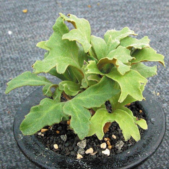 獅子イワダレヒトツバ「孔雀」 【603-061】 ウラボシ 2019.10.26 獅子葉に鈴虫芸を交える珍品。 開花期 冬季 常緑 日当たり 日陰 耐寒性 強 水やり 普通 施肥 生育期に有機液肥を2週間に1回程度 用土 基本培養土/ミズゴケ
