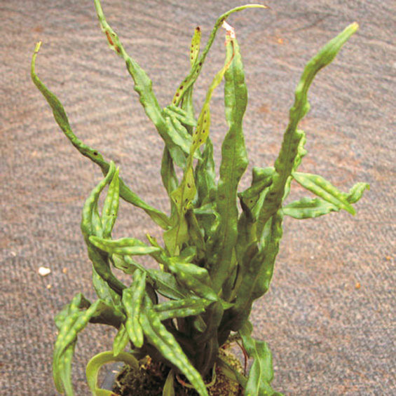 ノキシノブ「昇竜」 【604-015】 ウラボシ 2019.10.26 やや大型の品種で葉はねじれて天に昇る竜をイメージさせる。 開花期 冬季 常緑 日当たり 日陰 耐寒性 強 水やり 普通 施肥 生育期に有機液肥を2週間に1回程度 用土 基本培養土/ミズゴケ