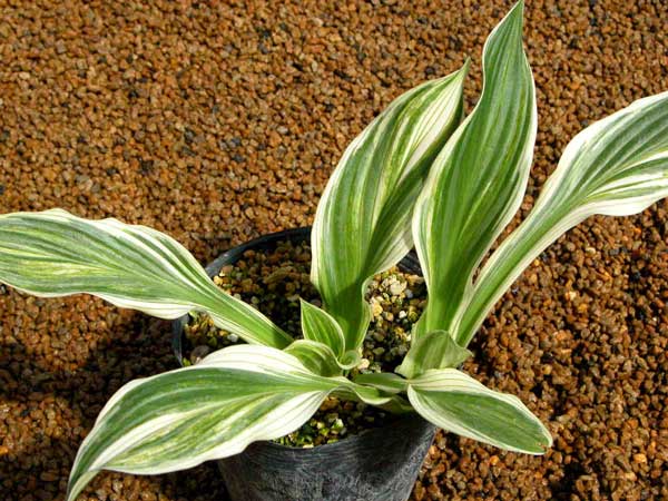 タチギボウシ「国宝錦」 【671-084】 ユリ 2019.10.26 白縞曙斑。 開花期 6-8月 冬季 落葉 日当たり 明るい日陰 耐寒性 強 水やり 普通 施肥 春・秋に油粕肥料、生育時に有機液肥を2週間に1回程度 用土 山野草の土/基本培養土