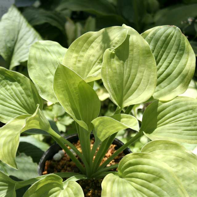 ギボウシ「キィウィ・サンラバー」 【672-023】 ユリ 2019.10.26 若草色の葉に黄覆輪斑。 開花期 6-8月 冬季 落葉 日当たり 明るい日陰 耐寒性 強 水やり 普通 施肥 春・秋に油粕肥料、生育時に有機液肥を2週間に1回程度 用土 山野草の土/基本培養土
