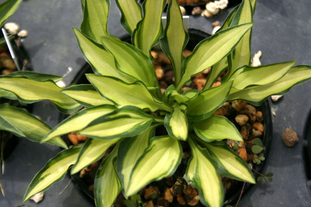 ギボウシ「ティニィ・ウィニィ・ビキニ」 【672-054】 ユリ 2019.10.26 小型黄中斑の最新品種。 開花期 6-8月 冬季 落葉 日当たり 明るい日陰 耐寒性 強 水やり 普通 施肥 春・秋に油粕肥料、生育時に有機液肥を2週間に1回程度 用土 山野草の土/基本培養土