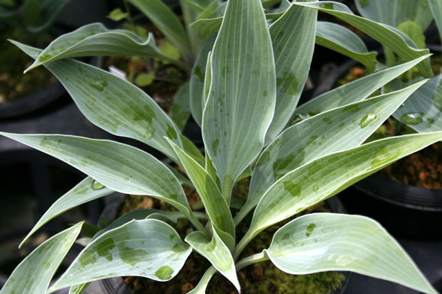 ギボウシ「ブルー・シルバー」 【672-063】 ユリ 2019.10.26 細葉で銀灰色の葉 開花期 6-8月 冬季 落葉 日当たり 明るい日陰 耐寒性 強 水やり 普通 施肥 春・秋に油粕肥料、生育時に有機液肥を2週間に1回程度 用土 山野草の土/基本培養土