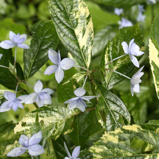 ヤマアジサイ「七段花錦」 【691-010】 ヤマアジサイ 2019.11.04 七段花の斑入り品種。 開花期 5-7月 冬季 落葉 日当たり 明るい日陰 耐寒性 強 水やり 多め 施肥 春・秋に油粕肥料、生育時に有機液肥を2週間に1回程度 用土 山野草の土/基本培養土