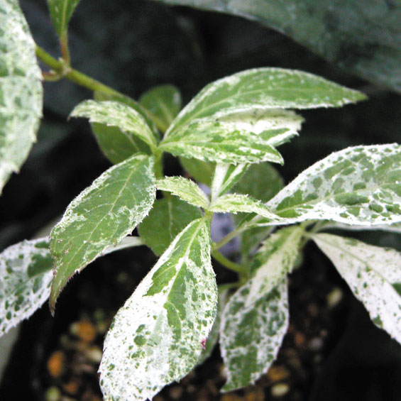 ヤマアジサイ長野産白散斑 【691-018】 ヤマアジサイ 2019.11.04 白散~砂子斑の美麗葉品種。 開花期 5-7月 冬季 落葉 日当たり 明るい日陰 耐寒性 強 水やり 多め 施肥 春・秋に油粕肥料、生育時に有機液肥を2週間に1回程度 用土 山野草の土/基本培養土