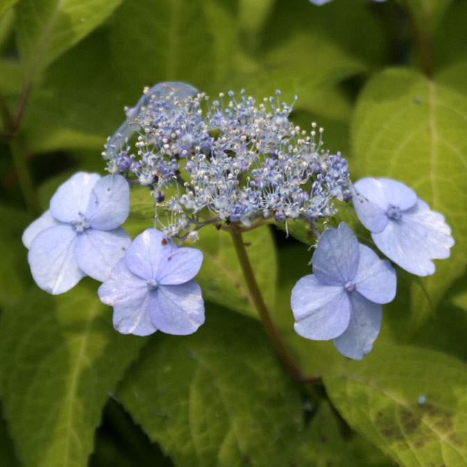 ヤマアジサイ「肥後絞り」 【691-051】 ヤマアジサイ 2019.11.04 九州産丸弁白絞り品種。 開花期 5-7月 冬季 落葉 日当たり 明るい日陰 耐寒性 強 水やり 多め 施肥 春・秋に油粕肥料、生育時に有機液肥を2週間に1回程度 用土 山野草の土/基本培養土