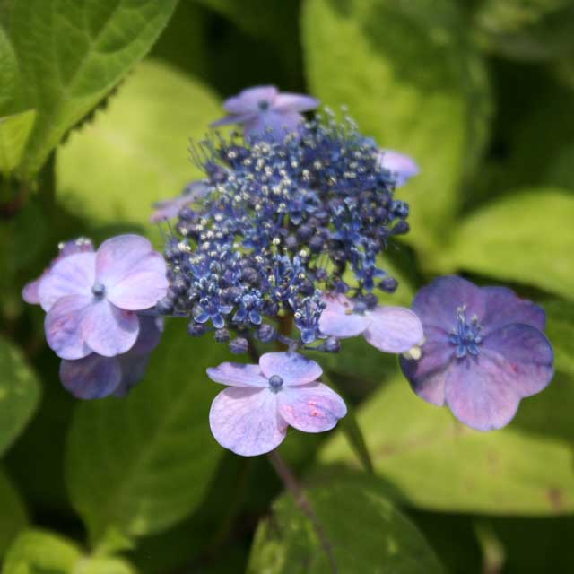 ヤマアジサイ「青海」 【691-052】 ヤマアジサイ 2019.11.04 青紫~紫の濃色花で両性花は濃青。 開花期 5-7月 冬季 落葉 日当たり 明るい日陰 耐寒性 強 水やり 多め 施肥 春・秋に油粕肥料、生育時に有機液肥を2週間に1回程度 用土 山野草の土/基本培養土