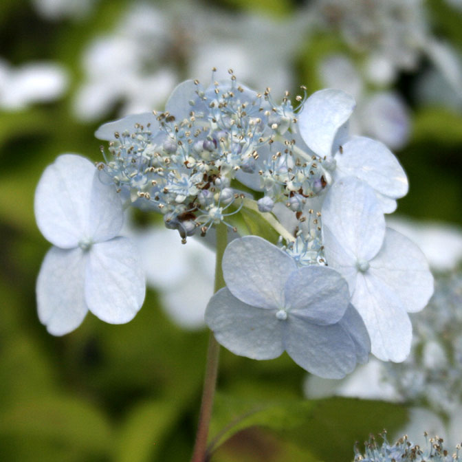 ヤマアジサイ「土佐美鈴」 【691-063】 ヤマアジサイ 2019.11.04 薄青花の梅弁品種。 開花期 5-7月 冬季 落葉 日当たり 明るい日陰 耐寒性 強 水やり 多め 施肥 春・秋に油粕肥料、生育時に有機液肥を2週間に1回程度 用土 山野草の土/基本培養土