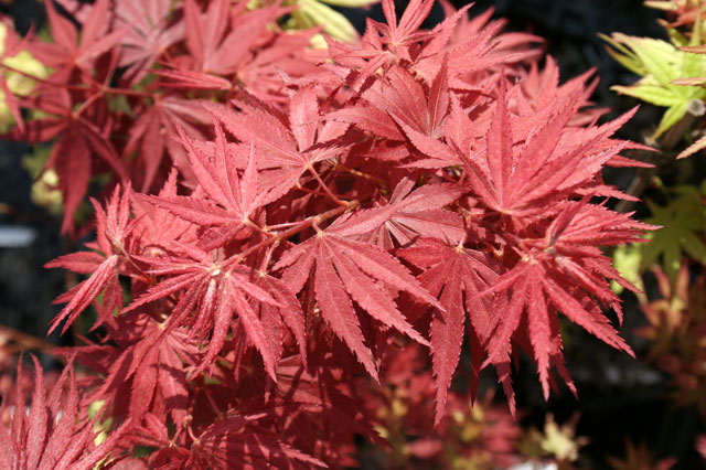 モミジ「紅さざなみ」 【692-054】 カエデ 2019.10.26 鮮やかな紅色で細かな鋸歯が特徴。 開花期 4-6月 冬季 落葉 日当たり 日向 耐寒性 強 水やり 普通 施肥 春・秋に油粕肥料、生育時に有機液肥を2週間に1回程度 用土 基本培養土/山野草の土