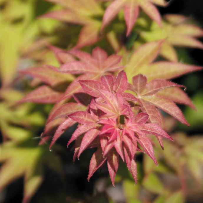 モミジ「光琳」 【692-061】 カエデ 2019.10.26 黄緑地に紅が載る微妙な色合いの美しい葉。 開花期 4-6月 冬季 落葉 日当たり 日向 耐寒性 強 水やり 普通 施肥 春・秋に油粕肥料、生育時に有機液肥を2週間に1回程度 用土 基本培養土/山野草の土