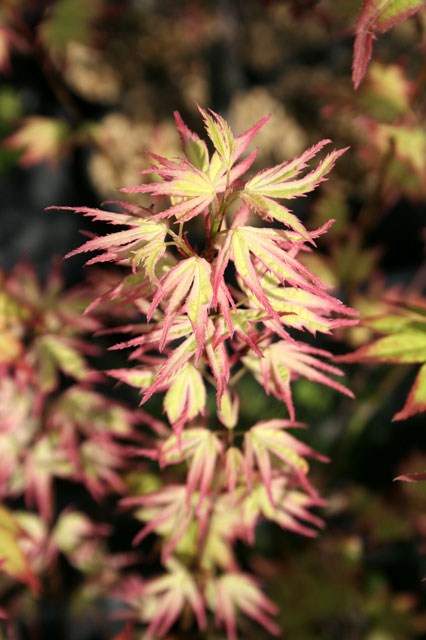 モミジ「胡蝶錦」 【692-065】 カエデ 2019.10.26 紅覆輪斑が次第に白く変化する。秋葉は赤紅色。 開花期 4-6月 冬季 落葉 日当たり 日向 耐寒性 強 水やり 普通 施肥 春・秋に油粕肥料、生育時に有機液肥を2週間に1回程度 用土 基本培養土/山野草の土