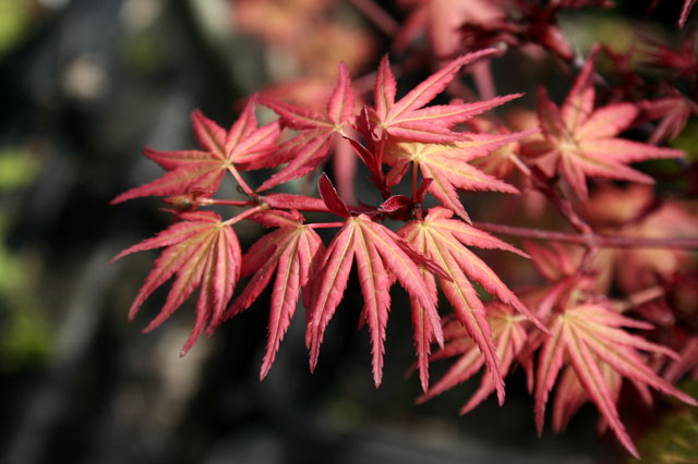 鮮やかな紅色の芽だしが中心部から緑に染まってゆく。