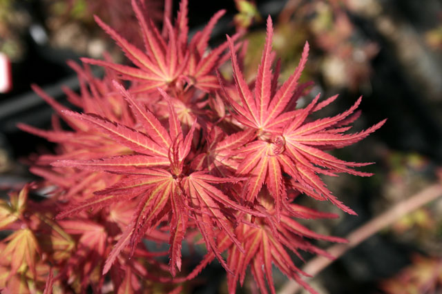 モミジ「山城」 【692-075】 カエデ 2019.10.26 鮮やかな紅色の芽吹きが紅覆輪、緑と変化する。 開花期 4-6月 冬季 落葉 日当たり 日向 耐寒性 強 水やり 普通 施肥 春・秋に油粕肥料、生育時に有機液肥を2週間に1回程度 用土 基本培養土/山野草の土