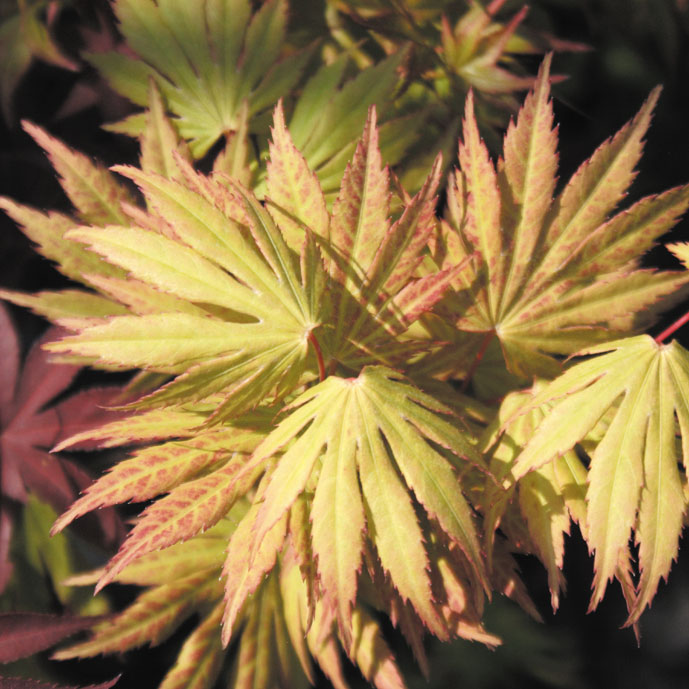 モミジ「グリーン・フラッグ」 【692-102】 カエデ 2019.10.26 オレンジの出芽が葉脈から黄色、緑と変化する。 開花期 4-6月 冬季 落葉 日当たり 日向 耐寒性 強 水やり 普通 施肥 春・秋に油粕肥料、生育時に有機液肥を2週間に1回程度 用土 基本培養土/山野草の土