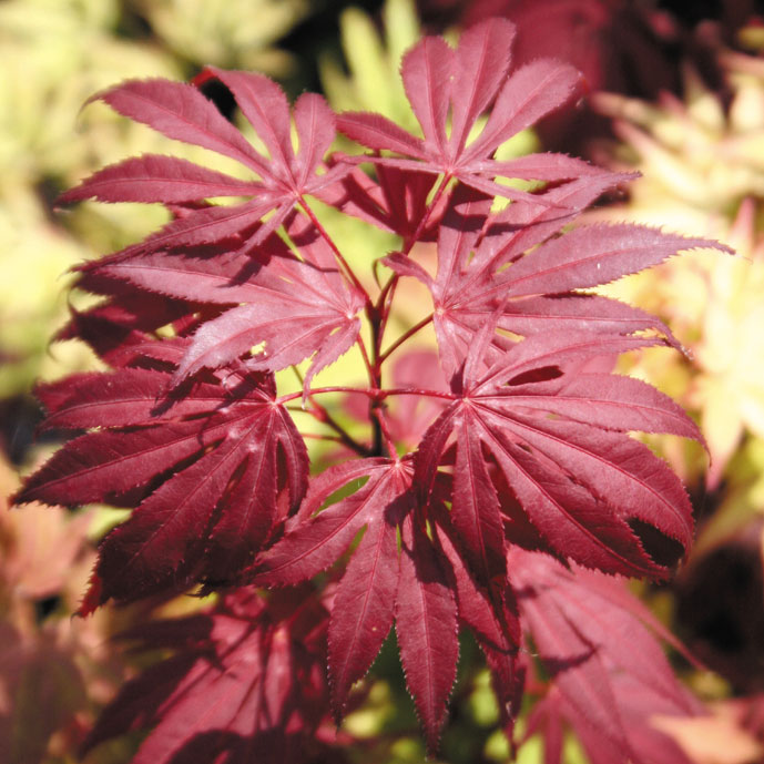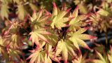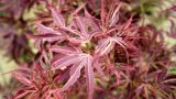 モミジ「オレゴン・サンセット」 【692-121】 カエデ 2019.10.26 濃赤紫の葉色で葉柄や枝も濃色。 開花期 4-6月 冬季 落葉 日当たり 日向 耐寒性 強 水やり 普通 施肥 春・秋に油粕肥料、生育時に有機液肥を2週間に1回程度 用土 基本培養土/山野草の土