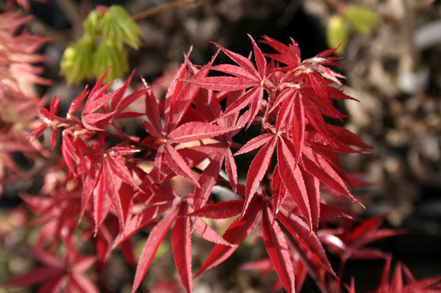 モミジ「摺墨」 【692-142】 カエデ 2019.10.26 照りのある黒紫色の深い色合いが特徴。 開花期 4-6月 冬季 落葉 日当たり 日向 耐寒性 強 水やり 普通 施肥 春・秋に油粕肥料、生育時に有機液肥を2週間に1回程度 用土 基本培養土/山野草の土