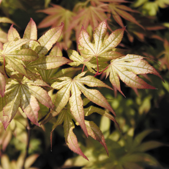 モミジ「沢千鳥」 【692-147】 カエデ 2019.10.26 薄黄緑色に緑の葉脈、秋は紅葉する。 開花期 4-6月 冬季 落葉 日当たり 日向 耐寒性 強 水やり 普通 施肥 春・秋に油粕肥料、生育時に有機液肥を2週間に1回程度 用土 基本培養土/山野草の土