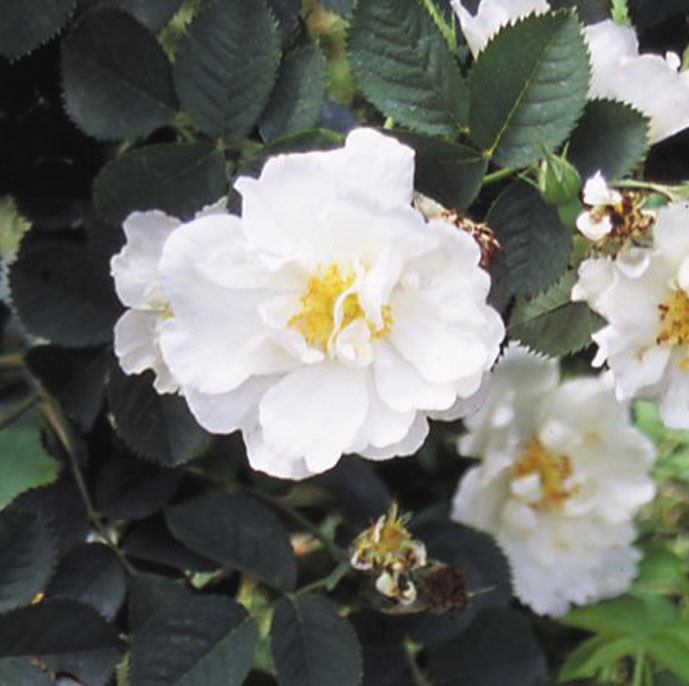 アルバ系を代表する良香半八重咲の白花。レア品。