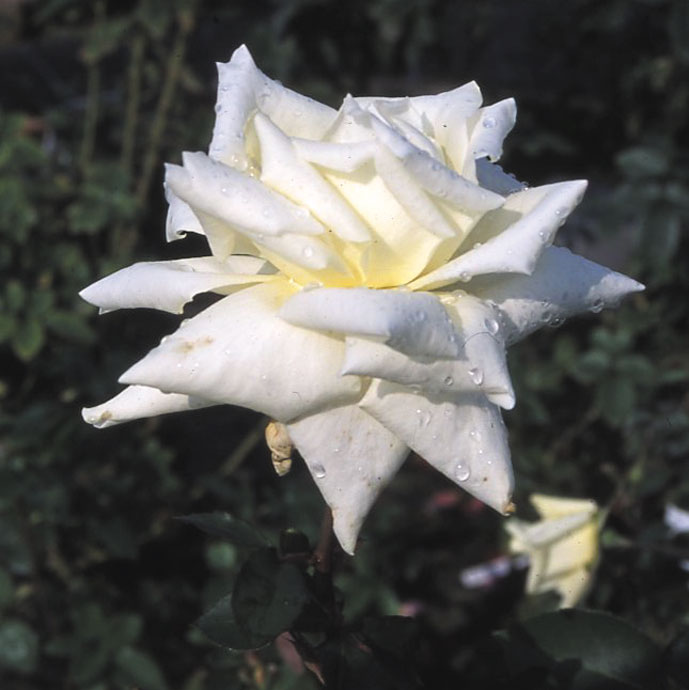 そどおり姫 【694-010】 バラ 2019.10.26 清楚で純白の大輪花。かすかに香る。HT系。 開花期 4-10月 冬季 落葉 日当たり 日向 耐寒性 強 水やり 普通 施肥 春・秋に油粕肥料、生育期にバイオポスト・リキッドサム(液肥)を2週間に1回程度 用土 基本培養土