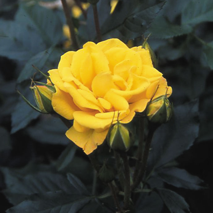 弁先に赤味を帯びる濃黄色多花性強健品種。