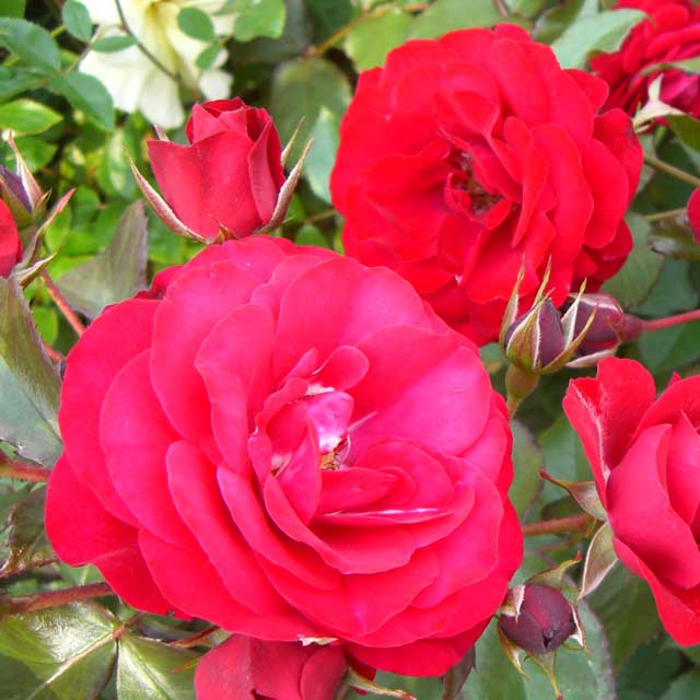 ユーロピアナ 【695-053】 バラ 2019.10.26 濃紅赤色で枝がしなるほどの大房咲き。花持ちよい。 開花期 4-10月 冬季 落葉 日当たり 日向 耐寒性 強 水やり 普通 施肥 春・秋に油粕肥料、生育期にバイオポスト・リキッドサム(液肥)を2週間に1回程度 用土 基本培養土