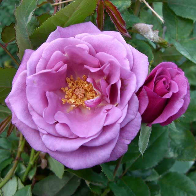 ショッキング・ブルー 【695-065】 バラ 2019.10.26 紅紫色の多花性品種で切花向き。 開花期 4-10月 冬季 落葉 日当たり 日向 耐寒性 強 水やり 普通 施肥 春・秋に油粕肥料、生育期にバイオポスト・リキッドサム(液肥)を2週間に1回程度 用土 基本培養土