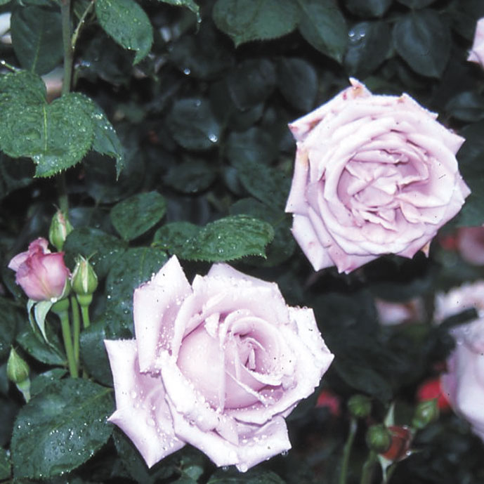 淡い藤色にさわやかな香りの大輪品種。つる系。