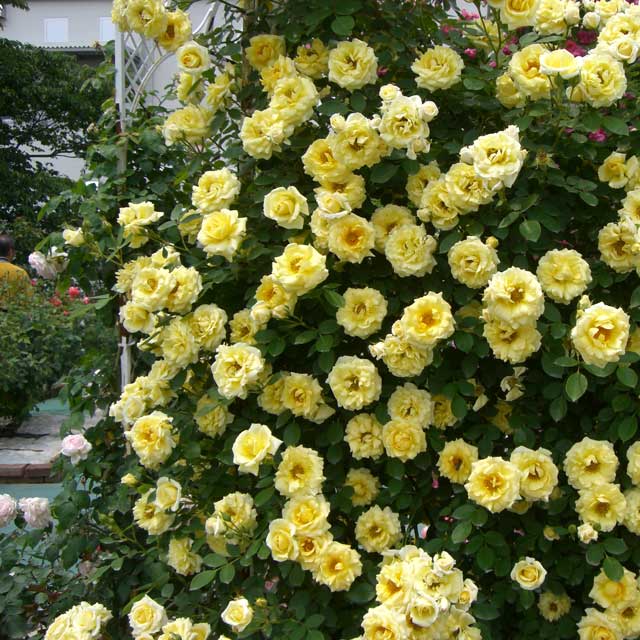 リトル・ルチア 【698-031】 バラ 2019.10.26 純黄色の小輪多花性品種。花持ち良く強健。 開花期 4-6月 冬季 落葉 日当たり 日向 耐寒性 強 水やり 普通 施肥 春・秋に油粕肥料、生育期にバイオポスト・リキッドサム(液肥)を2週間に1回程度 用土 基本培養土