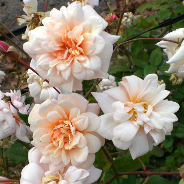 桃色がかったアプリコット色。花弁が反り、菊のように咲く。