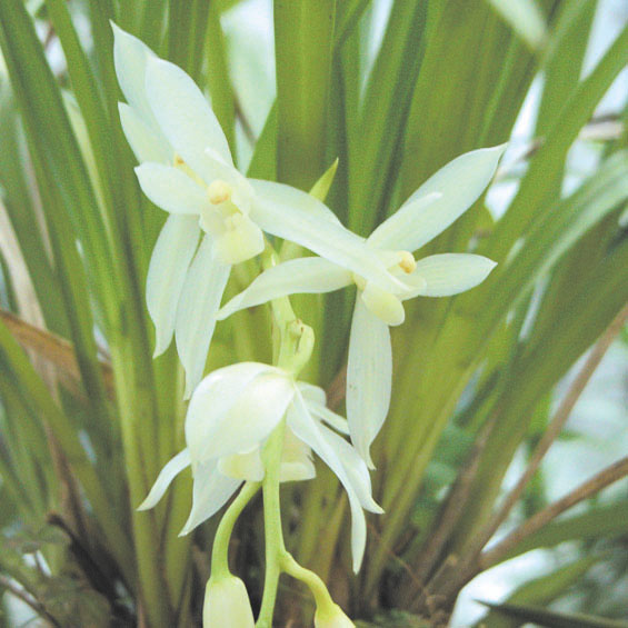 ヘッカラン白花 【802-010】 ラン 2019.10.26 開花期 8-10月 冬季 常緑 日当たり 明るい日陰 耐寒性 中 水やり 普通 施肥 春・秋に油粕肥料、生育期に有機液肥を2週間に1回程度 用土 山野草の土/基本培養土