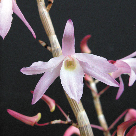 セッコク「おもかげ」 【821-042】 ラン 2019.10.26 開花期 4-5月 冬季 落葉 日当たり 明るい日陰 耐寒性 強 水やり 普通 施肥 生育期に有機液肥を2週間に1回程度 用土 ミズゴケ