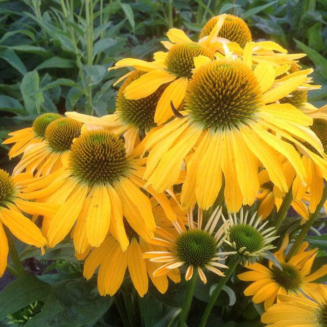 Echinacea ‘Golden Skipper’ 草丈40cm、明るい濃黄色の一重咲で花茎強く切花にも向く。