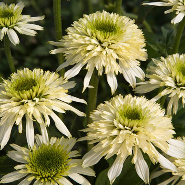 エキナセア「モッツァレラ」 【B60868】 エキナセア 2019.11.04 Echinacea ‘Mozzarella’ 草丈50cm、白の八重咲品種で中心部に緑を交える。 開花期 7-9月 冬季 落葉 日当たり 日向 耐寒性 強 水やり 普通 施肥 春・秋に油粕肥料、生育時に有機液肥を2週間に1回程度 用土 オリジナル園芸培養土