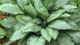 BRUNNERA m. ‘Jack of Diamonds’ 草丈35cm、ジャックフロストを大型にしてツイストした様な新品種で葉重ねも良い。