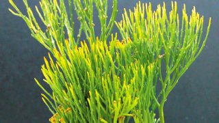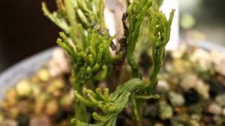 枝分れ多く葉先が黄金に染まる。開花期 冬季 常緑 日当たり 明るい日陰 耐寒性 中 水やり 普通 施肥 生育期に有機液肥を2週間に1回程度 用土 山野草の土/基本培養土