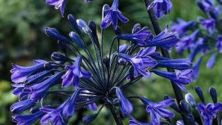Agapanthus 'Senna' 草丈90cm、「バックインブラック」を親に持つ選抜品種で黒軸に濃青紫色の花が特徴。開花期 7-9月 冬季 半落葉 日当たり 日向 耐寒性 強 水やり 普通 施肥 春・秋に油粕肥料、生育時に有機液肥を2週...