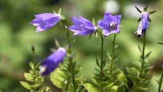 青い釣鐘状の花が特徴の小型種。開花期 6-8月 冬季 落葉 日当たり 日向 耐寒性 強 水やり 普通 施肥 春・秋に油粕肥料、生育時に有機液肥を2週間に1回程度 用土 山野草の土/基本培養土