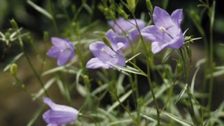 イワシャジンの小型タイプで栽培しやすい。開花期 6-8月 冬季 落葉 日当たり 日向 耐寒性 強 水やり 普通 施肥 春・秋に油粕肥料、生育時に有機液肥を2週間に1回程度 用土 山野草の土/基本培養土