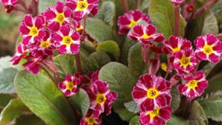 Primula 'Dark Rosaleen' 草丈15㎝、赤い花にピンクの星模様、中心部は黄色という面白い配色。開花期 3-6月 冬季 落葉 日当たり 明るい日陰 耐寒性 強 水やり 普通 施肥 春・秋に油粕肥料、生育時に有機液肥を2週間...