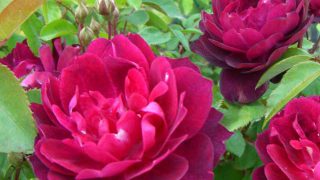 弁輪がピンクがかる巨大輪芳香品種。開花期 4-10月 冬季 落葉 日当たり 日向 耐寒性 強 水やり 普通 施肥 春・秋に油粕肥料、生育期にバイオポスト・リキッドサム(液肥)を2週間に1回程度 用土 基本培養土