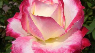 弁底に黄色を含む半剣弁高芯の巨大輪品種。開花期 4-10月 冬季 落葉 日当たり 日向 耐寒性 強 水やり 普通 施肥 春・秋に油粕肥料、生育期にバイオポスト・リキッドサム(液肥)を2週間に1回程度 用土 基本培養土