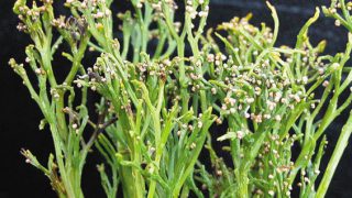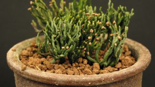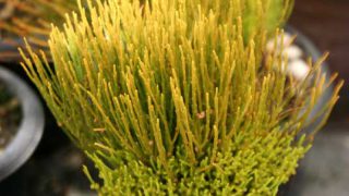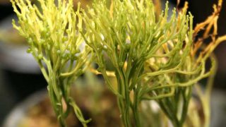 枝先が細かく分かれ屈曲する。開花期 冬季 常緑 日当たり 明るい日陰 耐寒性 中 水やり 普通 施肥 生育期に有機液肥を2週間に1回程度 用土 山野草の土/基本培養土