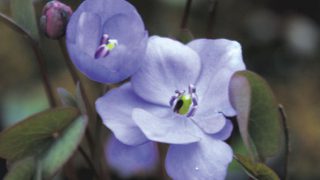 銀ノリ地合に紺散斑の美麗葉選抜品。開花期 3-5月 冬季 落葉 日当たり 明るい日陰 耐寒性 強 水やり 普通 施肥 春・秋に油粕肥料、生育時に有機液肥を2週間に1回程度 用土 山野草の土/基本培養土