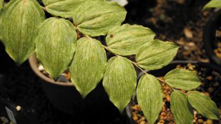 銀白散斑。開花期 6-8月 冬季 落葉 日当たり 明るい日陰 耐寒性 強 水やり 普通 施肥 春・秋に油粕肥料、生育時に有機液肥を2週間に1回程度 用土 山野草の土/基本培養土
