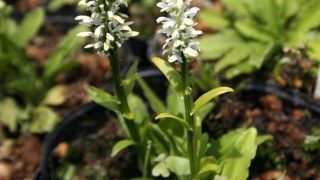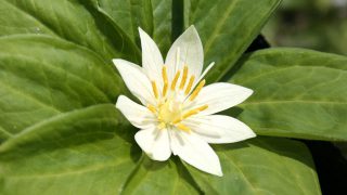 車状の葉の上に白い花を咲かせるツクバネソウの仲間。開花期 6-8月 冬季 落葉 日当たり 明るい日陰 耐寒性 強 水やり 普通 施肥 春・秋に油粕肥料、生育時に有機液肥を2週間に1回程度 用土 山野草の土/基本培養土