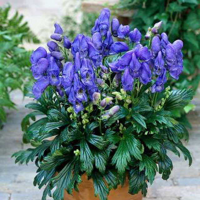 アコニツム・フィシェリー 【D4012001】 キンポウゲ 2019.10.26 Aconitum fischeri 草丈60㎝、青紫色の大輪花で鉢植えに向く矮性品種。 開花期 8-9月 冬季 落葉 日当たり 明るい日陰 耐寒性 強 水やり 普通 施肥 春・秋に油粕肥料、生育時に有機液肥を2週間に1回程度 用土 オリジナル園芸培養土