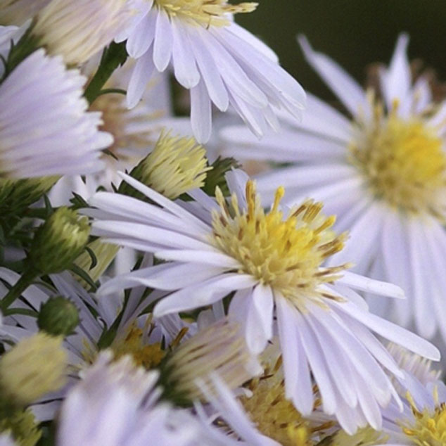 Aster dumo ‘Apollo’ 草丈25㎝、コンパクトな草姿で秋に白い花を多数つける。