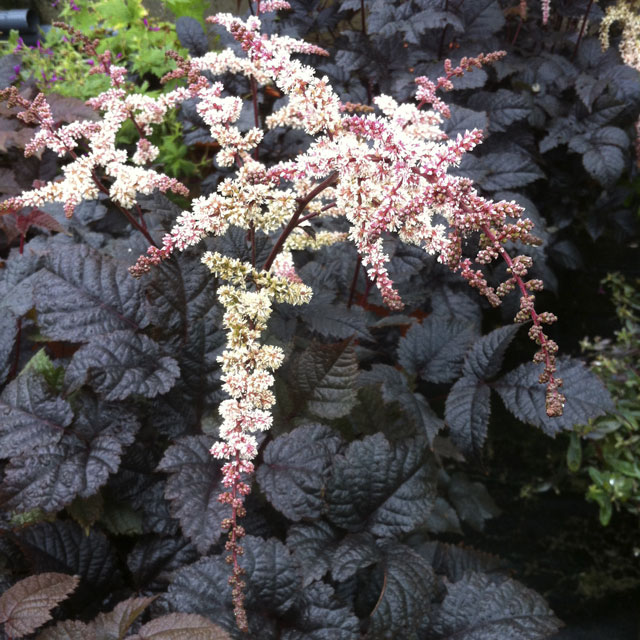 Astilbe Chocolate Shogun 草丈60㎝、赤銅色の葉にピンクの花の新品種。