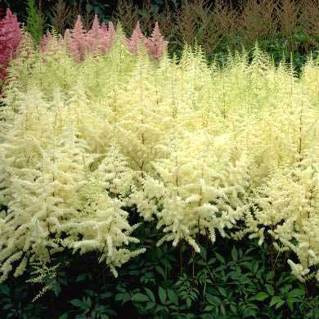 アスチルベAstilbe x Japonica ‘Ellie’ 草丈60cm、純白で大きな花穂が特徴。白花品種の中で最も優れた品種の一つ。ジャポニカ系。